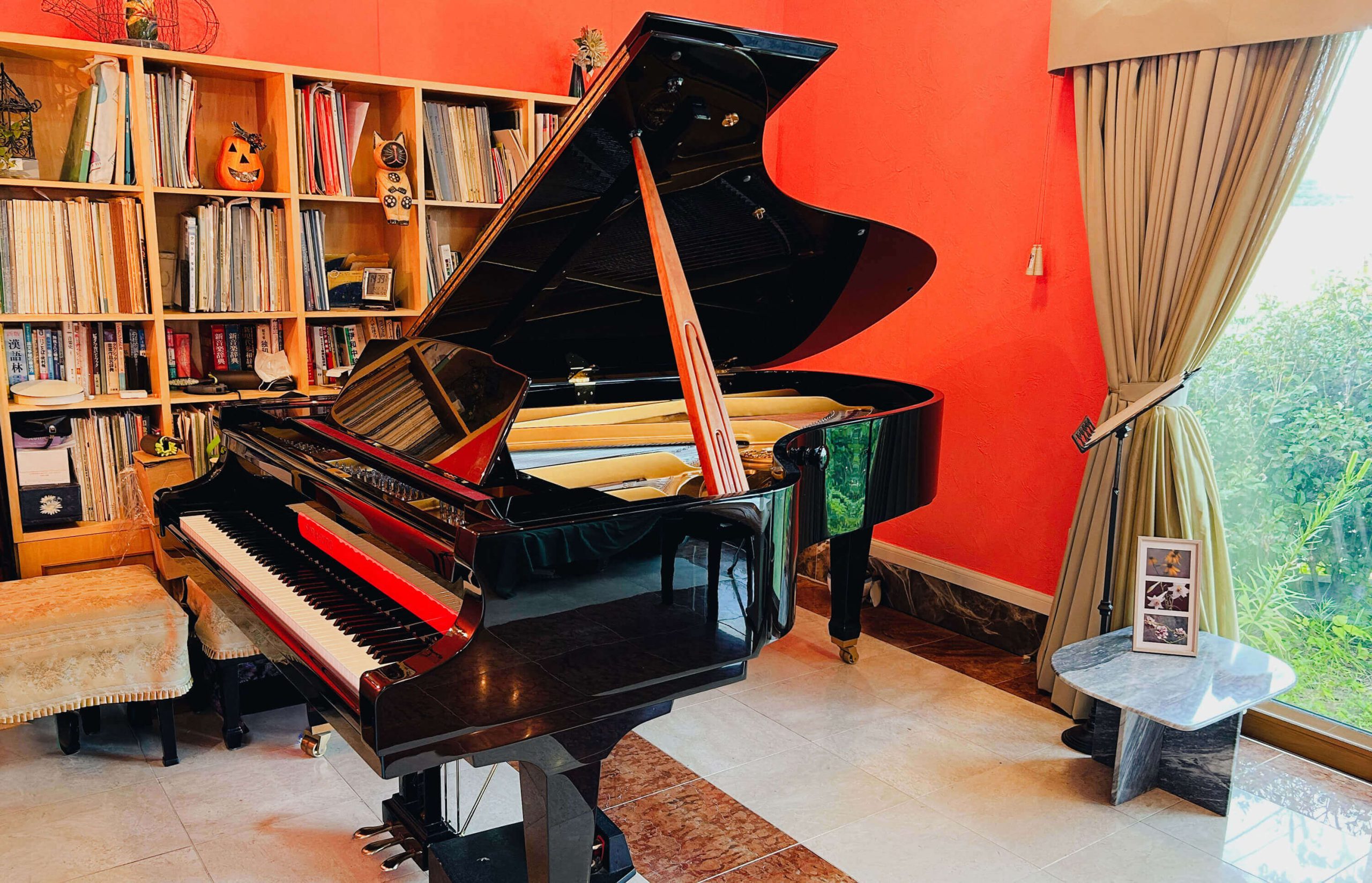 ここ日本、山形でも本場の音を味わえるようレッスン室をヨーロッパと同じスタイルで構え、故アルド・チッコリーニ氏に選定していただいたヨーロッパ製のピアノでお迎えいたします。